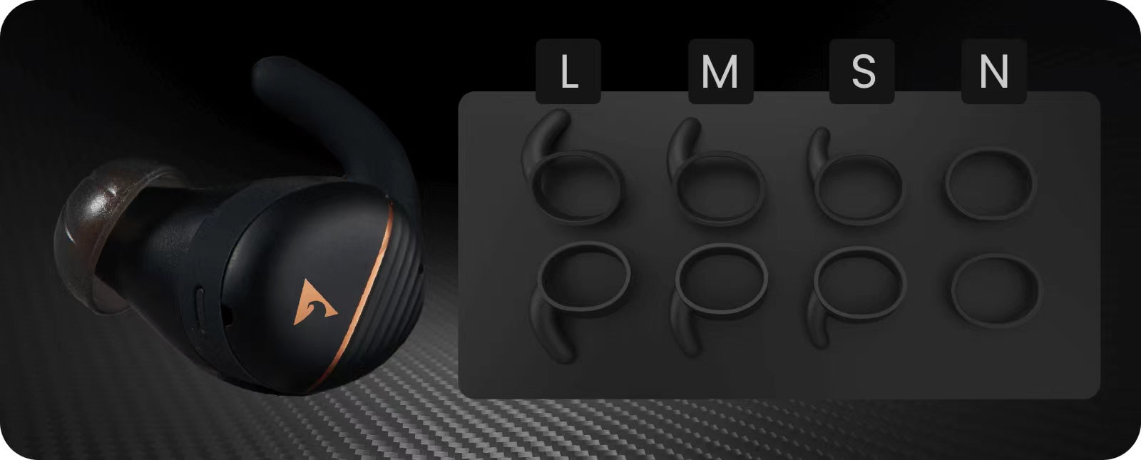 • 4 sizes of ear fins